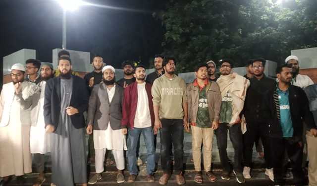 চাঁপাইনবাবগঞ্জ সীমান্তে উত্তেজনার প্রতিবাদ ও দিল্লির আগ্রাসনের বিরুদ্ধে ঢাকা বিশ্ববিদ্যালয়ে বিক্ষোভ মিছিল করেছে একদল শিক্ষার্থী।