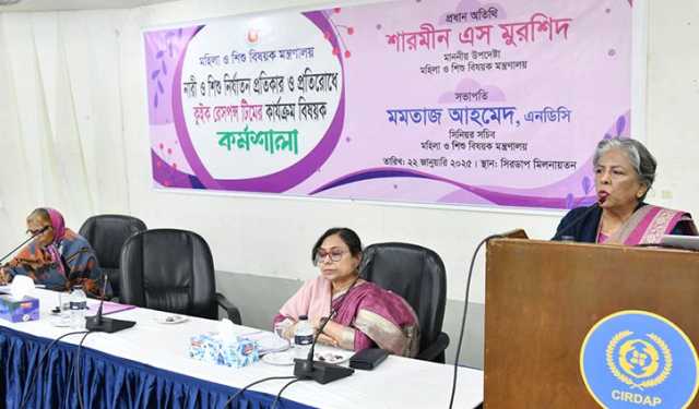 বুধবার (২২ জানুয়ারি) রাজধানীর সিরডাপ মিলনায়তনে নারী ও শিশু নির্যাতন প্রতিকার ও প্রতিরোধে কুইক রেসপন্স টিমের কার্যক্রম বিষয়ক কর্মশালায় প্রধান অতিথির বক্তৃতায় তিনি এ কথা বলেন।