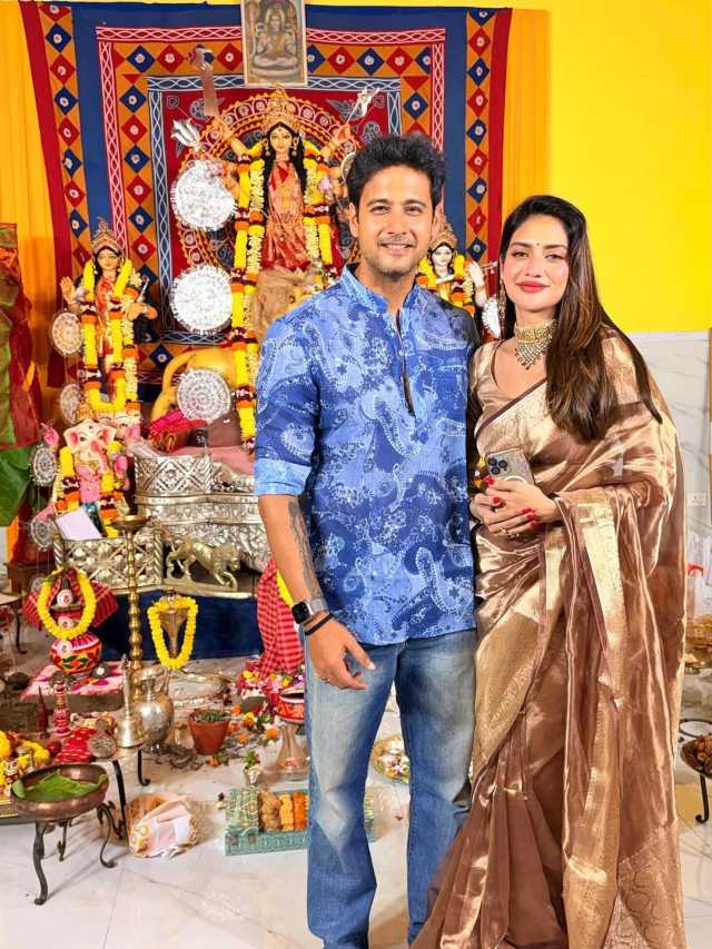 ৫. টলিউডের আলোচিত তারকা দম্পতি নুসরাত জাহান-যশ দাশগুপ্তা। মাঝে গুঞ্জন উড়েছিল, ভেঙে যাচ্ছে তাদের সংসার। যদিও এই গুঞ্জন উড়িয়ে দিয়েছেন নুসরাত-যশ। সবকিছু পেছনে ফেলে দুর্গাপূজা চুটিয়ে উপভোগ করেন এই দম্পতি। একসঙ্গে পূজামণ্ডপে দেখা গেছে তাদের। অষ্টমীর দিন তোলা ছবি সোশ্যাল মিডিয়ায় পোস্ট করে নুসরাত জাহান লেখেন, “একটু দেখো মা।”\