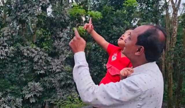 শিশুকে পাখি দেখাচ্ছেন আখতার হোসেন