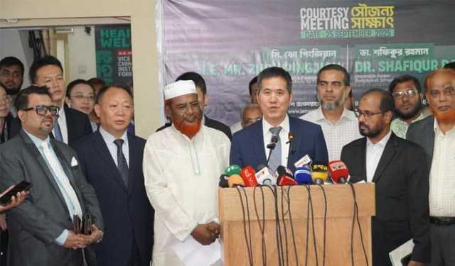 বাংলাদেশ জামায়াতে ইসলামীর আমির ডা. শফিকুর রহমানের সঙ্গে চাইনিজ পিপলস ইনস্টিটিউট অব ফরেন অ্যাফেয়ার্স এর ভাইস প্রেসিডেন্ট, রাষ্ট্রদূত মি. ঝৌ পিং জিয়ানের নেতৃত্বে ৬ সদস্যের উচ্চপর্যায়ের এক প্রতিনিধি দল সাক্ষাত করেছেন।