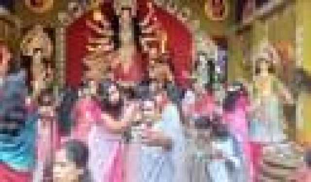 আজ দেবীর বিদায়, রংপুরের মণ্ডপে চলছে সিঁদুর খেলা