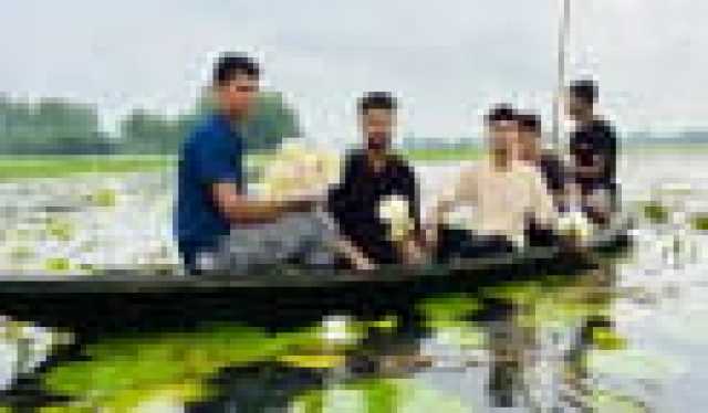 বিলে মুগ্ধতা ছড়াচ্ছে সাদা শাপলা