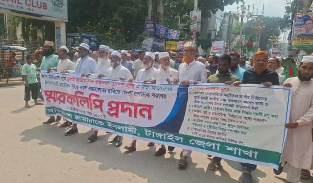 টাঙ্গাইল: টাঙ্গাইলের জেলা প্রশাসক শরীফা হকের মাধ্যমে প্রধান উপদেষ্টা বরাবর স্মারকলিপি দিয়েছে জামায়াতে ইসলামী। এর আগে তারা শহরের শহীদ স্মৃতি পৌর উদ্যোনে সভা করেন।