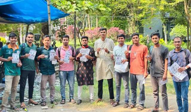 ছাত্রশিবির সমর্থিত ‘সম্মিলিত শিক্ষার্থী জোট’ প্যানেলের জিএস প্রার্থী ফাহিম রেজাকে বিশ্ববিদ্যালয়ের আমতলা, রবীন্দ্রনাথ ঠাকুর একাডেমিক ভবনের সামনে ও টুকিটাকি চত্বরে প্রচার চালাতে দেখা যায়।
