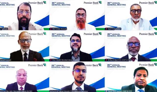 দি প্রিমিয়ার ব্যাংক পিএলসির ২৬তম বার্ষিক সাধারণ সভা (এজিএম) অনুষ্ঠিত হয়েছে। সোমবার (১৩ অক্টোবর) বেলা ১১টায় ডিজিটাল প্লাটফর্মে এই সভা অনুষ্ঠিত হয়। অনুষ্ঠানে সভাপতিত্ব করেন প্রিমিয়ার ব্যাংকের পরিচালনা পর্ষদের চেয়ারম্যান ডা. আরিফুর রহমান।