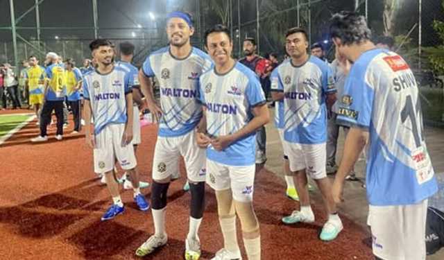 ওয়ালটন করপোরেট ফুটবল টিমের একটি হাস্যেজ্জ্বল মুহূর্ত।