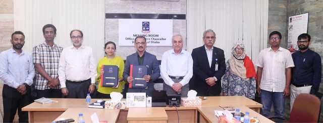 চুক্তিতে ঢাকা বিশ্ববিদ্যালয়ের পক্ষে স্বাক্ষর করেন বিশ্ববিদ্যালয়ের কোষাধ্যক্ষ অধ্যাপক ড.